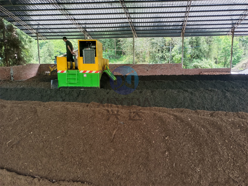 有機肥生產(chǎn)線中的發(fā)酵設備履帶翻堆機屬于地面堆放發(fā)酵設備,是目前較節(jié)省土建、人力資源的一種制肥模式。需將物料堆成長形條垛由翻堆機定時對物料實施攪拌、破碎,在好氧條件下進行有機物的分解。